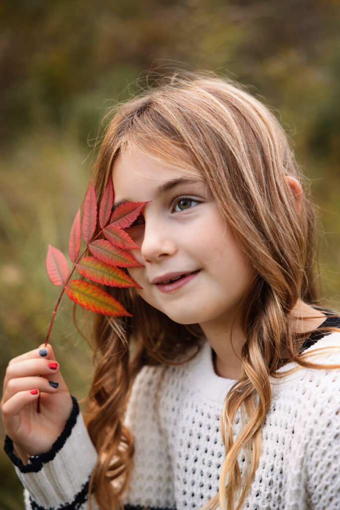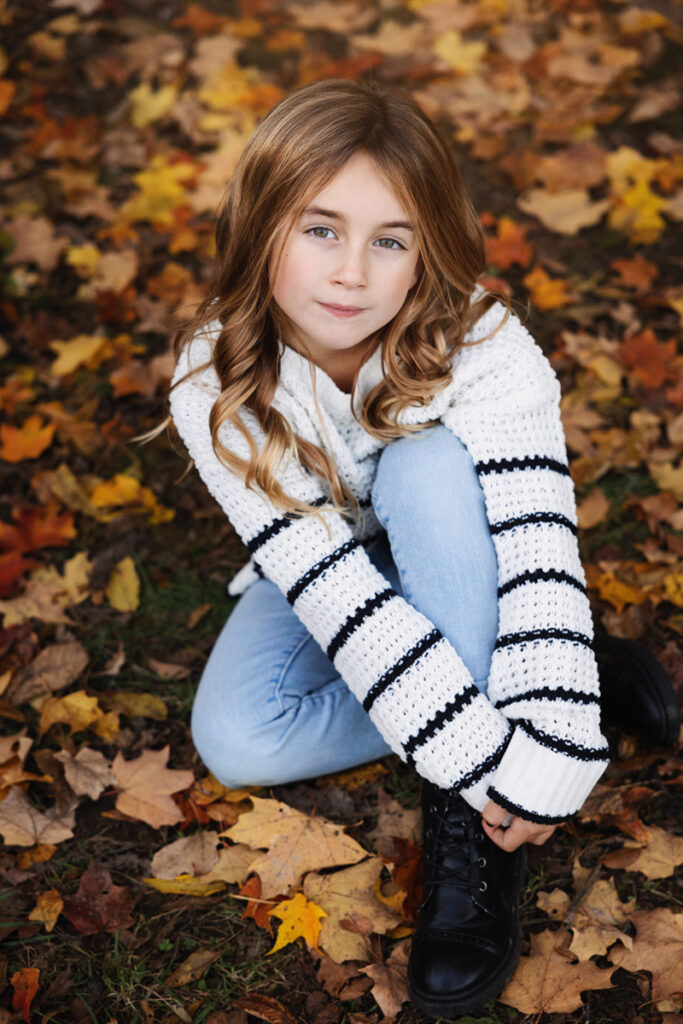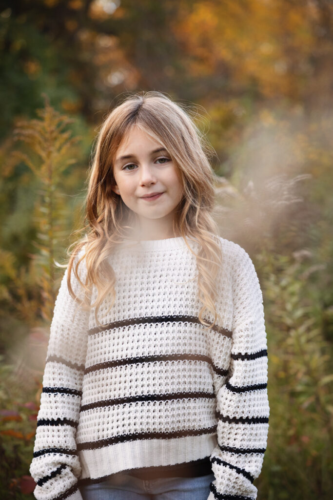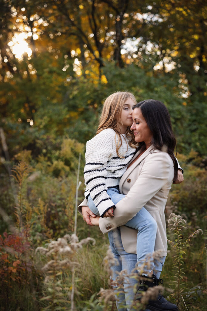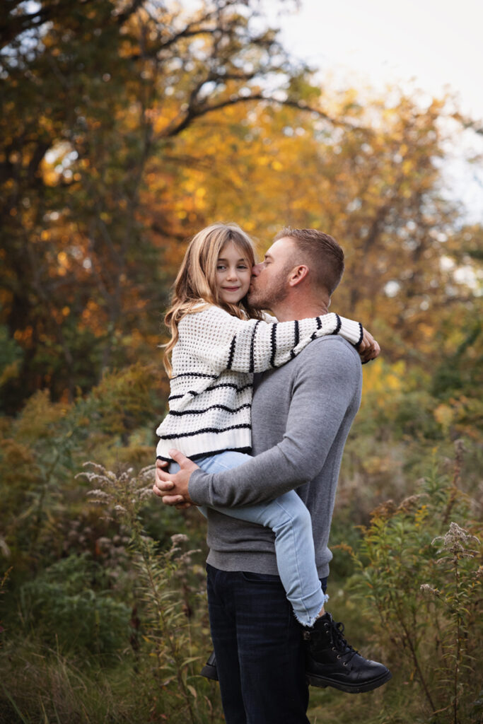 Fall Colors, exploration and sunset with this beautiful family! I had so much fun meeting and documenting memories for these three and their furry friend last year… I was honestly a little worried about topping those photos we got with the amazing sunset! But we explored a different forest preserve this time around, we had some more Fall leaves on the ground and they went with a different look with their attire. And with this little explorer, it was so easy to capture some amazing moments because she’s so bright and full of energy and excitement! Really, I gave some gentle prompts here and there, but most everything that was perfect was her. She sort of directs the flow, which is awesome!